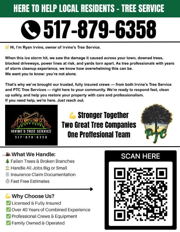 Irvine’s Tree Service and PTC Tree Services have teamed up to bring you the highest-quality storm cleanup and tree removal at a price that makes sense.